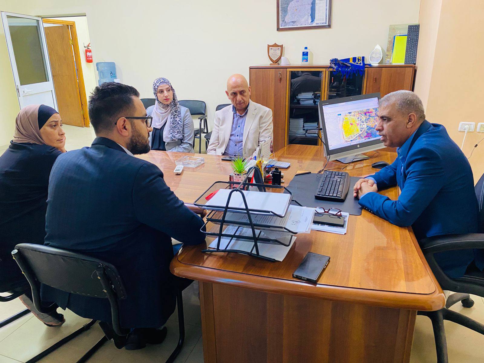 جانب من زيارة اللواء حسام أبو حمدة محافظ محافظة قلقيلية لمديرية الحكم المحلي، حيث التقى مدير المديرية محمود اعمر وطاقم المديرية، وذلك بحضور سائد موافي مدير عام الإدارة العامة للتخطيط والتطوير.